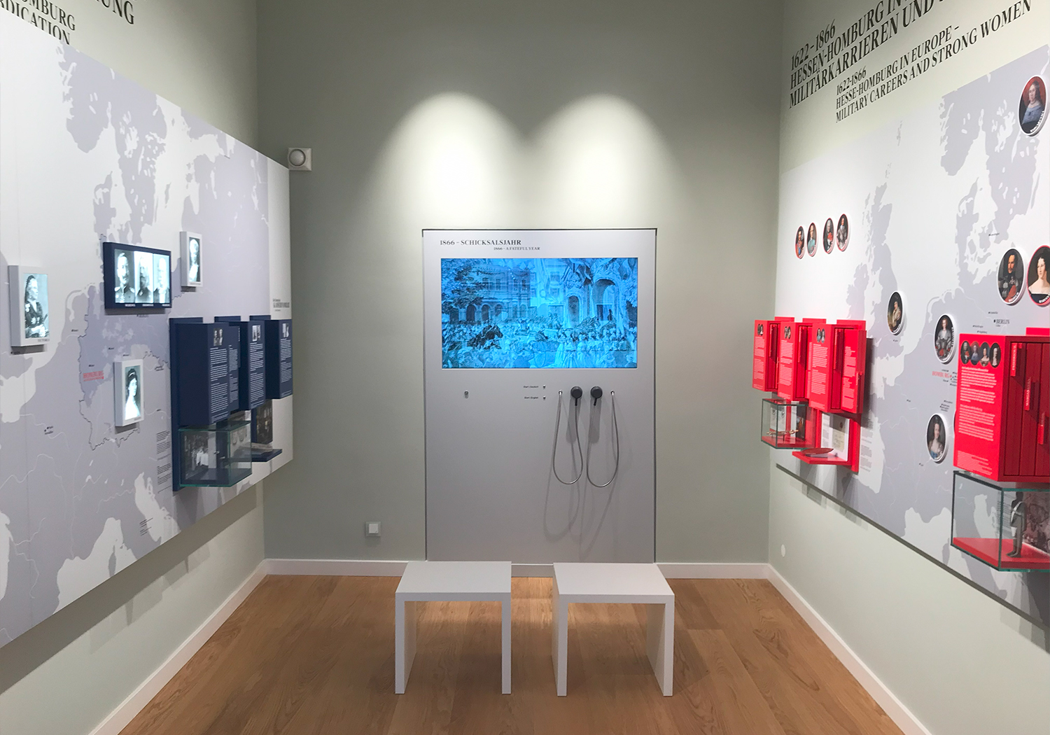 In Zusammenarbeit mit den Staatlichen Schlösser und Gärten Hessen wurde eine Digitale Ausstellung umgesetzt mit Schwerpunkt interaktiver und integrierter Signage Systeme. Neben multilingualen audiovisuellen Inhalten, lag der Fokus auch auf eine zentrale und drahtlose Inhaltsbereitstellung und eines robusten Systems bei erschwerten Umgebungsbedingungen.